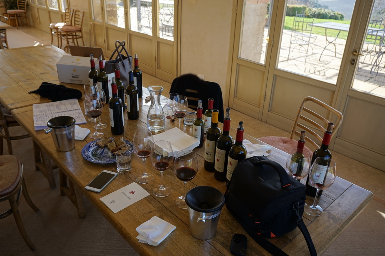 Beim Blick von der Terrasse, der über die frühlingshafte Landschaft bis zum Meer reicht, erläutert Bettina Berthau die Frankophilosophie des Weinguts und die Ausstattung der Kellerei. Rund 150.000 Flaschen stelle man jährlich her, wobei der „Tassinaia” mengenmäßig den Schwerpunkt bilde. Immerhin 70 Prozent der Weine gehen in den Export, vor allem nach Asien und in die USA, aber auch in einige europäische Länder. Allergrößte Mühe gibt sich Bettina Berthau bei der Verkostung der Weine und uns damit die sonnige Gelegenheit, außergewöhnliche Vertreter der Toskana kennenzulernen.
