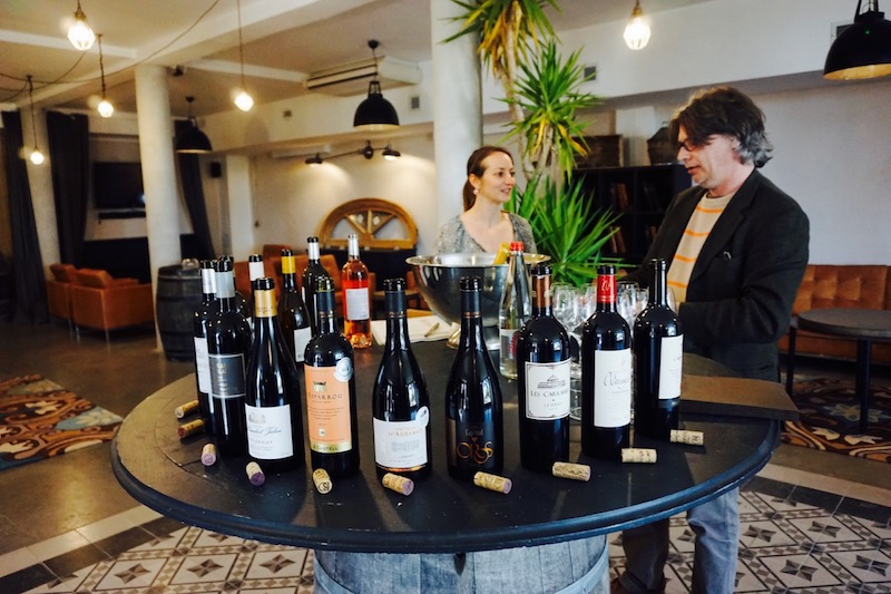 Nach der Verkostung und dem Besuch der Weingärten gibt es ein wenig Auszeit im Rotwein getünchtem Zimmer. Wir sortieren noch einmal die Eindrücke des heutigen Tages, schreiben erste Skizzen und lichten den Fotowust. Gut so, denn für den Abend mit Elsa und Pablo braucht es noch einmal alle Aufmerksamkeit. Die beiden betreiben die Tapas-Bar am zentralen Platz von Assignan und öffnen extra für uns ihre Türen. Elsa, kommt von der Insel Réunion, ihr Mann Pablo, der in der Küche steht, stammt aus Uruguay. Er verdiente sein Geld zuvor als Werbefilmer in Montevideo, sie ist studierte Philosophin, für beide ist das Leben und Arbeiten in Assignan ein echter Neustart im Leben gewesen. Ihr Glück perfekt macht ein dreijähriger Rabauke, den wir an diesem Abend nur mit „Tiger“ anreden dürfen.